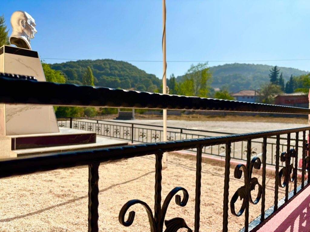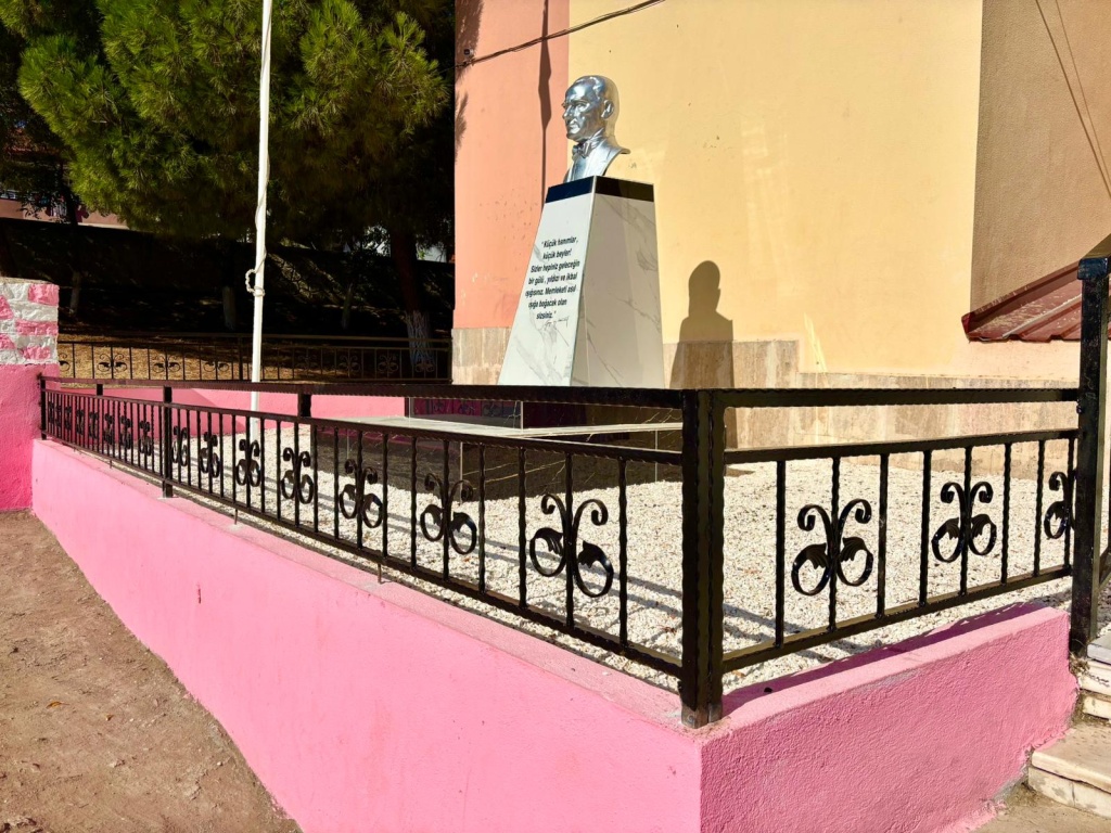 Geçen yıldan bu yana tamamen farklı bir görünüme kavuşan Atatürk büstümüze yapılan yeni bir yenilikle çevre korkuluk demirleri monte işlemi gerçekleştirildi.